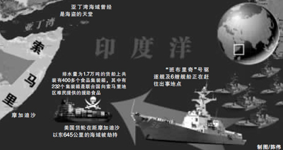 美军第五舰队发言人简坎贝尔8日表示,美军暂时不会对海盗采取军事行动,“我们一直在密切注意着局势的发展,但我们并没有讨论,也没有考虑在目前或者未来采取军事行动”。