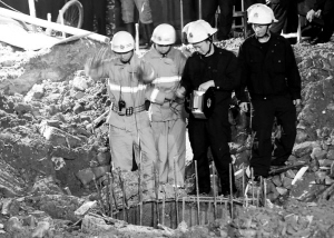 第一时间赶到现场抢险救人的宝安消防人员告诉记者,他们下到井里后,试图将不幸被埋的青工黄伟救出,但是救援人员在井里发现,原先深度约16米的桩井,已因井壁穿孔而涌进了大量水泥混凝土,并且正在凝固,桩井只剩下10多米深了,仅靠人工和现有的抢险工具,难以迅速将埋在井底的工人救出;随后他们火速调来了大型挖掘机,在井边快速挖出大坑和斜坡,尝试从侧翼凿破井壁,解救被埋人员。