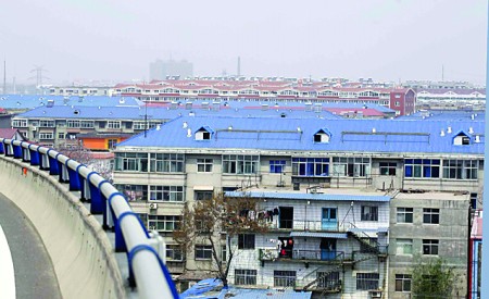 近日,天桥区对全区重点道路两侧及重点区域的房屋开展“平改坡”改造工程,目前已竣工 125 栋楼共76941.1平方米。“平改坡”改造屋面全部采用合成树脂瓦,该材料具有环保节能、隔热、耐腐蚀、耐低温、施工简便等特点。