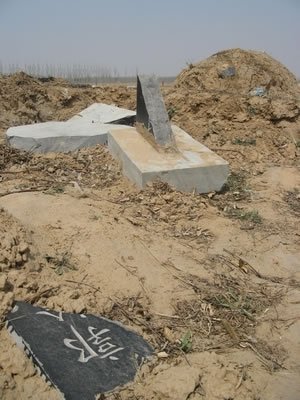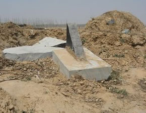 被砸坏的墓碑。