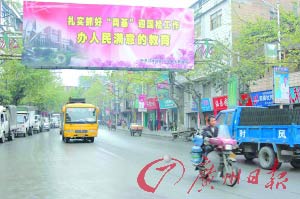习水桂花路上“办人民满意的教育”大广告牌后正是一排地下旅社、发廊和洗浴中心。