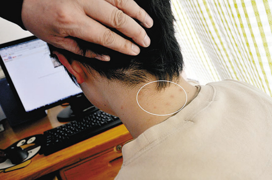 “这是你们来了解情况我才回来的,要不天天往外跑,晚上全是虫子。”鞠先生露出自己左臂和腋下肋骨的部分,记者看到上面的肿包足有巴掌大,发红、泛紫、连片。鞠先生儿子的脖子上也布满小米粒儿一样的红点,像烧饼上的芝麻粒。