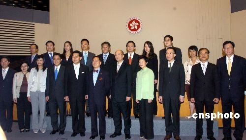 资料图:二零零八年六月十日,香港特区行政长官曾荫权、政制及内地事务局局长林瑞麟、行政长官办公室主任陈德霖、八位新获委任的副局长及九位政治助理下午一起会见新闻界。中新社发 谭达明 摄版权声明:凡注有“cnsphoto”字样的图片版权均属中国新闻网,未经书面授权,不得转载使用。【更多图片】