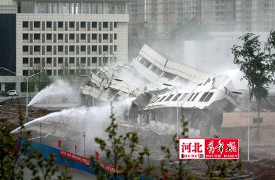 本报讯(记者彭丽晗)昨日6时6分,随着一声巨响,石市桥西区成功组织对民心广场项目建设涉及的石家庄市轴承设备厂沿裕华西路两栋办公楼和明月家具大厦(师范街以东)营业楼实施爆破拆除。3栋建筑爆破面积共计24000余平方米。
