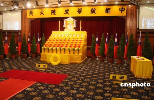 4月16日,2008年中枢致祭成陵大典在台北市举行,马英九特派蒙藏委员会委员长高思博主祭。图为大典会场。中新社发 耿军 摄版权声明:凡注有“cnsphoto”字样的图片版权均属中国新闻网,未经书面授权,不得转载使用。【更多图片】