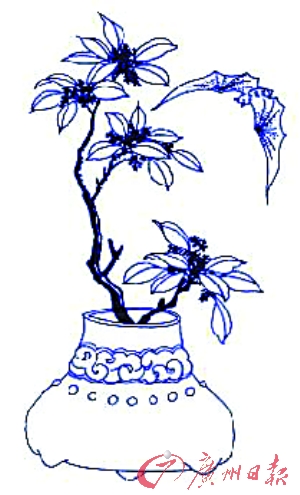 “桂”与“贵”谐音,桂子的吉祥寓意是“贵子”。一幅画着莲花和桂花的图案,寓意“连生贵子”;一幅画着蝙蝠和桂花的图案,寓意“福增贵子”。