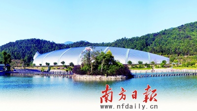 在国家风景名胜区及道教圣地—罗浮山脉自然保护区腹地,方圆几里内村民不少都年逾百岁仍精神矍铄,因此被称为百岁山,景田百岁山———亚洲最大的矿泉水生产基地就坐落在这片山水秀邃之地。进入基地,三座巨大的银色穹顶建筑跃入眼帘,宛如三只“长寿龟”栖息于青山绿水间。景田在水文化打造上以龟型现代建筑构架为主体,用寓意健康、长寿的三只银龟赋予饮水与长寿渊源缔结的文化概念,打造饮用水的贵族家园。
