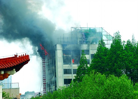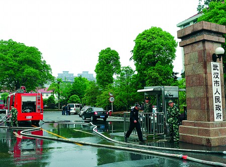 武汉市政府办公大楼起火 大众网-齐鲁晚报 2009.04.1711:54 关注 4月16日10时10分左右,武汉市政府办公厅3号办公楼因检修发生火灾,经消防人员全力扑救,于10时40分扑灭。 火灾未造成人员伤亡。目前事故原因正在调查之中。 据新华社