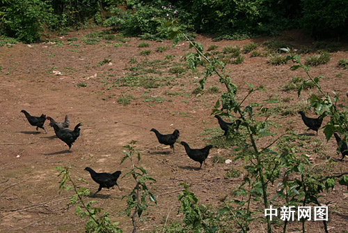 中新网韶关4月17日电题:深山里飞出珍稀极品五黑一绿鸡