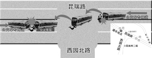 事发西园路与昆瑞路交叉口,疑为公交车刹车失灵
