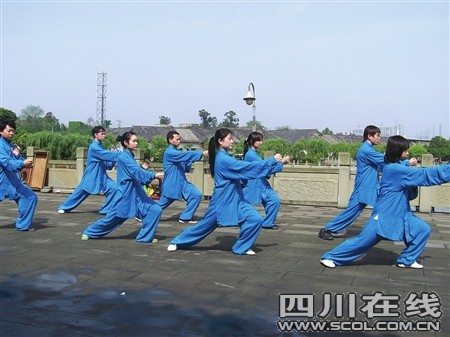 昨日上午,三圣花乡某农家乐,8个身着统一蓝色太极拳服装的年轻人,或推拳运掌,或手舞刀剑,或伴着古琴,翩翩跳起太极舞……原来,他们正是杨氏太极拳第六代嫡传杨林昨日收下的8个入室弟子,这8个人全是大学生。8名徒弟中,其中今年刚考入上海大学“文化研究”方向的王翔,还是一位“准博士”。
