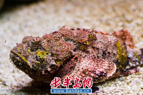 毒鮋隶属于硬骨鱼纲鮋(yóu)形目毒鮋科;也称为石头鱼、海底“忍者”;伪装成一块不起眼的石头,它的硬棘具有致命的剧毒,如果被石头鱼的刺刺伤,毒素马上侵入人体,轻者造成肿痛,重者可能会造成痉挛和昏迷。经常以守株待兔的方式等待食物的到来。