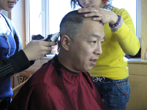 终于轮到《无人区》,黄渤的身体还没练着,头发就先被盯上。黄渤说自己从小学以后就再也没有剃过光头,这次造型之前,心理非常挣扎,反复和导演宁浩探讨,仅发型定妆就达五次之多,每一次都被剪短一点。他说:“原本以为能保住一点点头发,早知道这样,第一次就直接剃光了。”摸着自己的光头,黄渤开玩笑说:“感觉太奇特了!从来没有过这样的手感。”