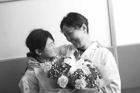 下午1时许,一行人乘坐的汽车刚出郑州高速收费站,却被一辆豫A牌照的轿车“拦”住了。打开车门一问,原来,这名叫耿民乐的郑州市民从大河报上看到了王娟赴郑安装假肢的消息后,非常激动,早早地跑到高速路口等候。认出王娟,耿先生上前一个“熊抱”,“好样的孩子,叔叔敬佩你!”羞涩的小王娟低头浅笑。