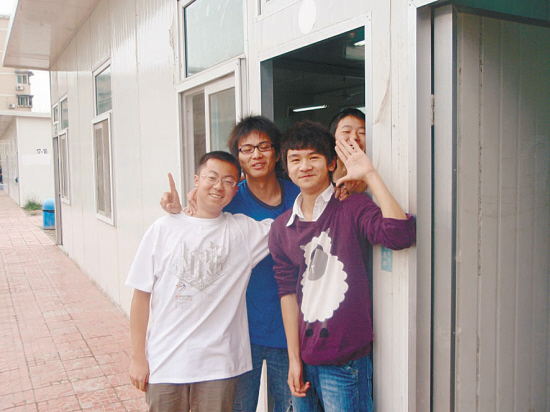 学生们在板房教室学习