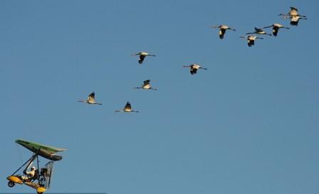 美国用机动滑翔飞翼教大鹤迁徙(组图)