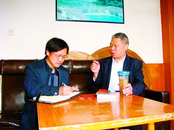 图为熊老侄孙熊桂林在接受笔者陈恭森的采访。