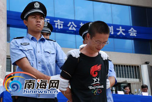 4月24日上午,(海南)三亚政法部门召开声势浩大的公捕公判大会,依法对30名“两抢一盗”嫌犯实施公开逮捕,对9名罪犯进行公开宣判,其中2名罪大恶极的“2006·5·27”特大抢劫杀人案主犯当场被押赴刑场执行死刑。