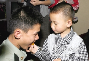 “噢!红鞋子。”当小郞铮打开鞋盒时,高兴得手舞足蹈,抱着李帅就亲了一口,“叔叔真好”,还把自己最喜欢的小番茄喂进李帅嘴里。