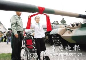昨日,“敬礼娃娃”郎铮、“芭蕾女孩”李月和同学杨璐、北川幼儿园老师刘玲一行,在亲人陪同下来到成都军区驻渝某红军师装甲团寻找恩人,说声“谢谢”。