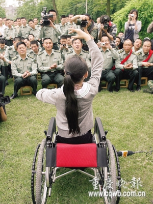 去年中秋节,她坐着轮椅来到部队,将自己亲手绣的牡丹羌绣献给恩人。她答应恩人,自己一定会站起来。刘玲信守承诺,这一次,行动不便的她硬是自己站起来走进部队。