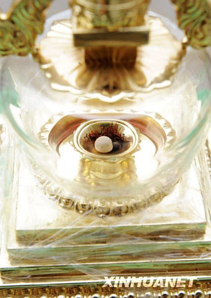这是4月26日拍摄的从尼泊尔迎请的释迦牟尼佛舍利。