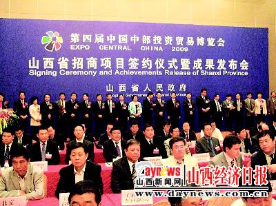 山西省招商项目签约仪式暨成果发布会在合肥举行 40个重大项目签约(图) 山西新闻网 山西新闻网官方账号 2009.04.2804:16 关注 山西新闻网 山西经济日报 4月27日,在第四届中博会上,山西省举行项目签约仪式暨成果发布会。图为签约仪式现场。本报记者