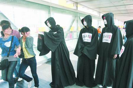 散发传单者穿黑斗篷、戴骷髅面具 推介景区方式“雷人”