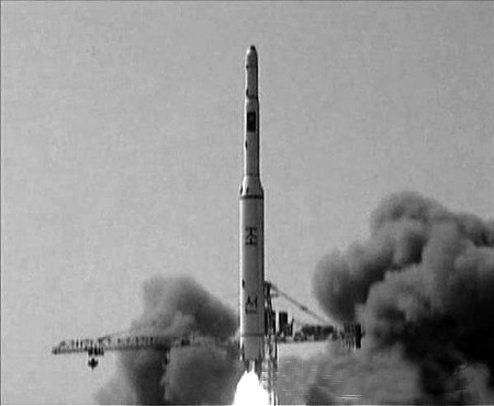朝鲜5日发射“光明星2号”卫星的视频截图。 新华/法新