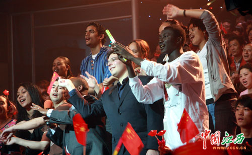 听说有老外要来中国红歌会舞台唱歌,在南昌留学的外国学生也来为他们加油鼓劲。(江西网记者 邱辉强 摄)