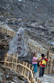 一块重达150吨的巨石,盘踞在东河口地震遗址公园中。这块地震石的下面,就是何祥贵家里以前的良田。“我们整个后院社就剩4个青壮年。”何祥贵说,他和张林当了管委会副手,同时兼任公园的保安。“虽然我家最幸运,没有一个伤亡,但我还是选择留下来。”管委会主任王钧成说,看见我们在纪念台上挂的标语没有:你们在地下,我们在地上,你们和我们永远在一起!“我们准备引进经济林木和果树,让满山栽满树木,一年后请你们再来,我一定请你们吃东河口的梨子和核桃。”