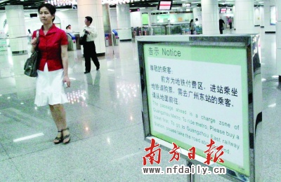 见到记者时,林小姐不停地抱怨:“别的地铁通道都可以随便通行,这里为什么就要另外收钱?我只是借道,又没有乘坐地铁,凭什么收费呢?”当记者问林小姐,为什么不走地面时,林小姐显得十分无奈。她说,开始打算走路面到东站,可是从广园东路一眼望去,白花花一片,既看不到人行横道,也不知道到底要走多远。情急之下,拦下一辆出租车问路,的哥告诉她:“从地面绕到广州东站的话,足有2公里,走30分钟都未必能到。”