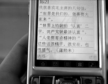 薄熙来给市民发“红色短信” 内容为毛主席名言