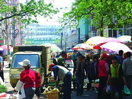 海泊河早市管理部门自4月开始已不再收取400多位早市农贸区摊贩的管理费,并明确告知摊贩由于阻碍交通和干扰正规市场经营等原因,上级主管部门将取缔早市上的农贸区。但取缔通知发出月余,5月6日早晨,记者来到了海泊河早市,发现前来买菜人群已将人民路、本溪路和鞍山路路口堵得水泄不通。在农副产品区域卖菜的商贩不但没有减少消失,反而由于不再收取管理费,农贸区规模不断扩大,逐渐向本溪路北向延伸。据前来买菜的市民介绍,海泊河早市由于卖的农贸产品很便宜,而且商贩也比较多,所以附近的小区居民都来该市场买菜。