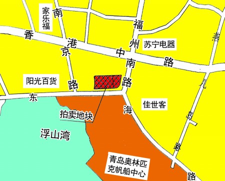 记者在采访中了解到,青岛市东海西路45号、47号原为青岛市建委等部门办公所在地,该地块地处青岛市最繁华的中心商业区,东邻佳世客购物中心,西邻家乐福,与五四广场和奥帆中心仅有一步之遥,周边林立着曾经有"山东第一高楼"之称的青岛国际金融中心等高档写字楼。对这块地,人们更喜欢用"钻石地块"替代"黄金地块",来形容该地块的稀缺程度,马路对面的相邻地块曾拍出1.62万元/平方米的天价。