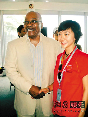 原来在2007年夏天,刘园园在与张卫健、阿娇共同主演的热播剧《A计划》的宣传空隙,作为中国演艺明星代表参加了在南非举办的AIGP为中国队助威,并受到了时任南非副总统祖马的热情接见。当向祖马先生介绍到刘园园时,这位热情的非洲之子惊喜得瞪大了眼睛,连声惊呼中国女生太漂亮太可爱了!并一把拉住刘园园的手,强烈要求和“小美人”合影,并高声宣布这是他的中国“女朋友”,访问中国时要好好得炫耀一番。(王亿)