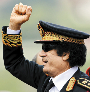 卡扎菲引人注目主要是因为他的服装。与其他领导人不同,卡扎菲身着军礼服,头戴大檐礼帽,鼻梁上架着墨镜,身后跟着女卫兵,派头十足。