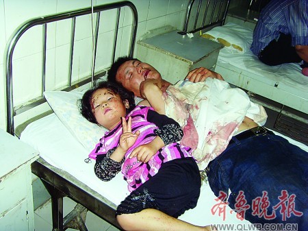 受伤的钱先生和他四岁的女儿。