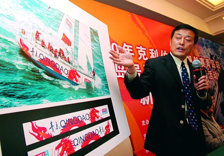同时,11 日,2009-2010克利伯环球帆船赛的“青岛号”大帆船的船体设计方案公布。这次发布的新船体图案融入了红色龙的元素,与原来船体单一的白色相比更加夺目、据了解,2009-2010年克利伯环球帆船赛将于2010年2月20日(正月初七)抵达青岛奥帆中心。届时青岛组委会将举办欢迎仪式、颁奖晚会、启航仪式等活动。组委会还将开展市民与船员互动活动。利用元宵节,通过组织各国船员参与社区、志愿者家庭民俗文化活动,与市民共度佳节。青岛号“新装”发布。记者杨宁摄