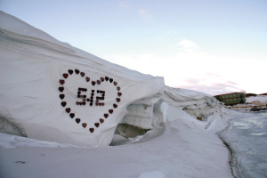 纪念表盘西侧,矗立着一面四川汶川特大地震记事墙,墙上铭文记述了这场地震造成的巨大损失和中国人民奋起抗震救灾的英雄壮举,浮雕刻画了救援人员解救被困群众的感人场面。纪念表盘东侧危楼上,悬挂着“万众一心、众志成城,不畏艰险、百折不挠,以人为本、尊重科学”的大幅标语。