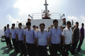 随后,举行了庄严的升国旗、唱国歌仪式。胡锦涛等党和国家领导人同大家一起,齐声高唱中华人民共和国国歌。在雄壮激昂的国歌声中,鲜艳的五星红旗冉冉升起,高高飘扬在学校地震遗址最高点塔楼顶端。