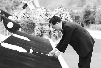 悼同胞 胡锦涛深情俯身献白菊