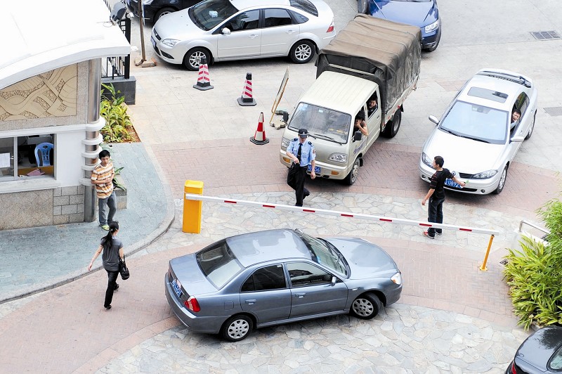 昨日上午11点,这名女业主欲将车开出小区,当经过大门口拦车横杆时,值班保安示意先交费,又遭到女业主拒绝。据保安说,女业主当场就开骂,保安也“较劲”了,明确表态 “不给停车费,就不予放行”。