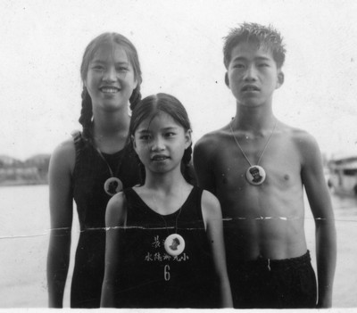 本文作者(左一)参加上世纪60年代纪念毛主席畅游湘江活动。