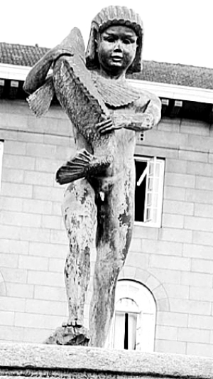 这尊喷泉雕像位于肯尼亚首都内罗毕最高法院门口,雕像是一个全裸的男孩,他手持一条大鱼正在小便。雕像建于英国殖民时期,其用意在于表明执法公正,毫不留情。“这并不能表现司法的公正和透明,相反,这描述的是对儿童不公平的裸露。”肯尼亚男子权益保护组织的主席恩德里图·尼约卡表示,“这对于儿童来说,是一种侮辱,这尊雕像有色情倾向,体现的是对男性基本权益和自由的侮辱和暴力侵犯,这是一种不道德的行为。”