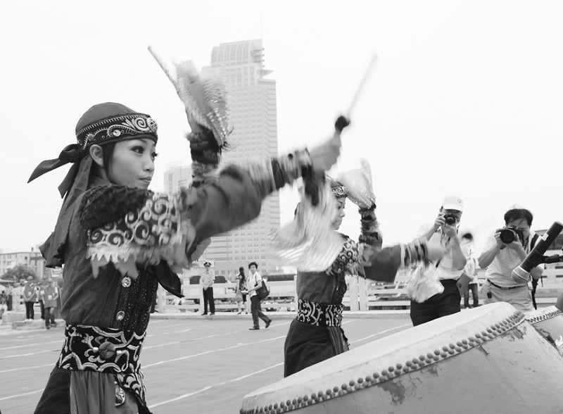 鼓声震天,舞刀弄枪,台湾东方艺术团的演员们想要通过舞蹈重现300多年前,郑成功士兵进军台湾前在厦门操兵演练、整军备战的场景。