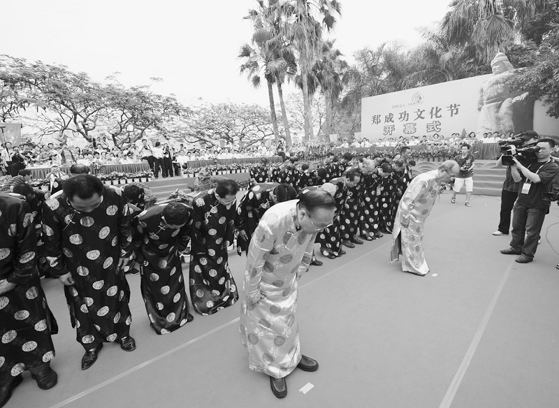 “那个改朝换代、风云变幻的岁月,一位伟人站在滚滚奔腾入海的鹭江之畔,为厦门岛命名:思明。思明,从此成为英雄厦门与世长存的名号。思明,也从此和这位伟人——— 伟大的民族英雄,郑成功永远相守相连。”现场司仪如此开场白。