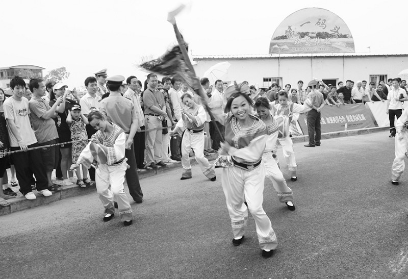 来自海峡两岸的15个表演队伍,从第一码头出发到海军码头,边走边跳,行进表演了1.85公里。