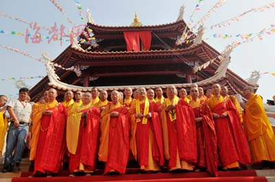 海内外高僧的莅临让整个仪式蓬荜生辉,参加仪式的大师,来自印尼、新加坡、越南,还有宝岛台湾、香港等地。中国台湾佛教会理事长净良大师说:“台湾有20余位僧人前来参加仪式,台湾的佛教和大陆一脉相承,信徒之间来往频繁,这样的活动有助于海峡两岸的沟通和了解。”