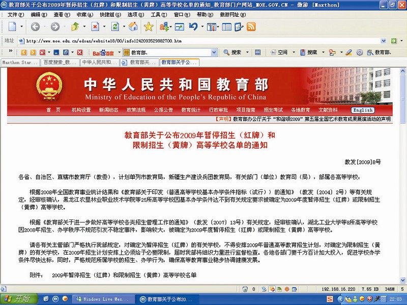 记者注意到,汤院长这一说法和教育部前不久发布的消息不符。并且,前不久,央视“朝闻天下”栏目也曾报道:对于违规招生被亮黄牌的学校,教育部今年特要求其主管部门必须严格控制学校今年的招生规模,并切实加强监督管理,规范招生、办学秩序。